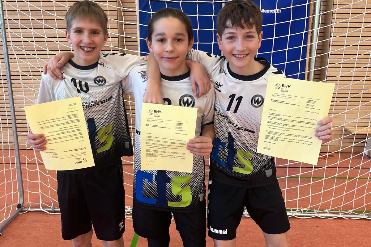 Die Burghauser D-Jugend Handballer Robin Kerwagen, Kajetan Kugler, David Endres stehen nun im Kader der Altbayern-Auswahl.