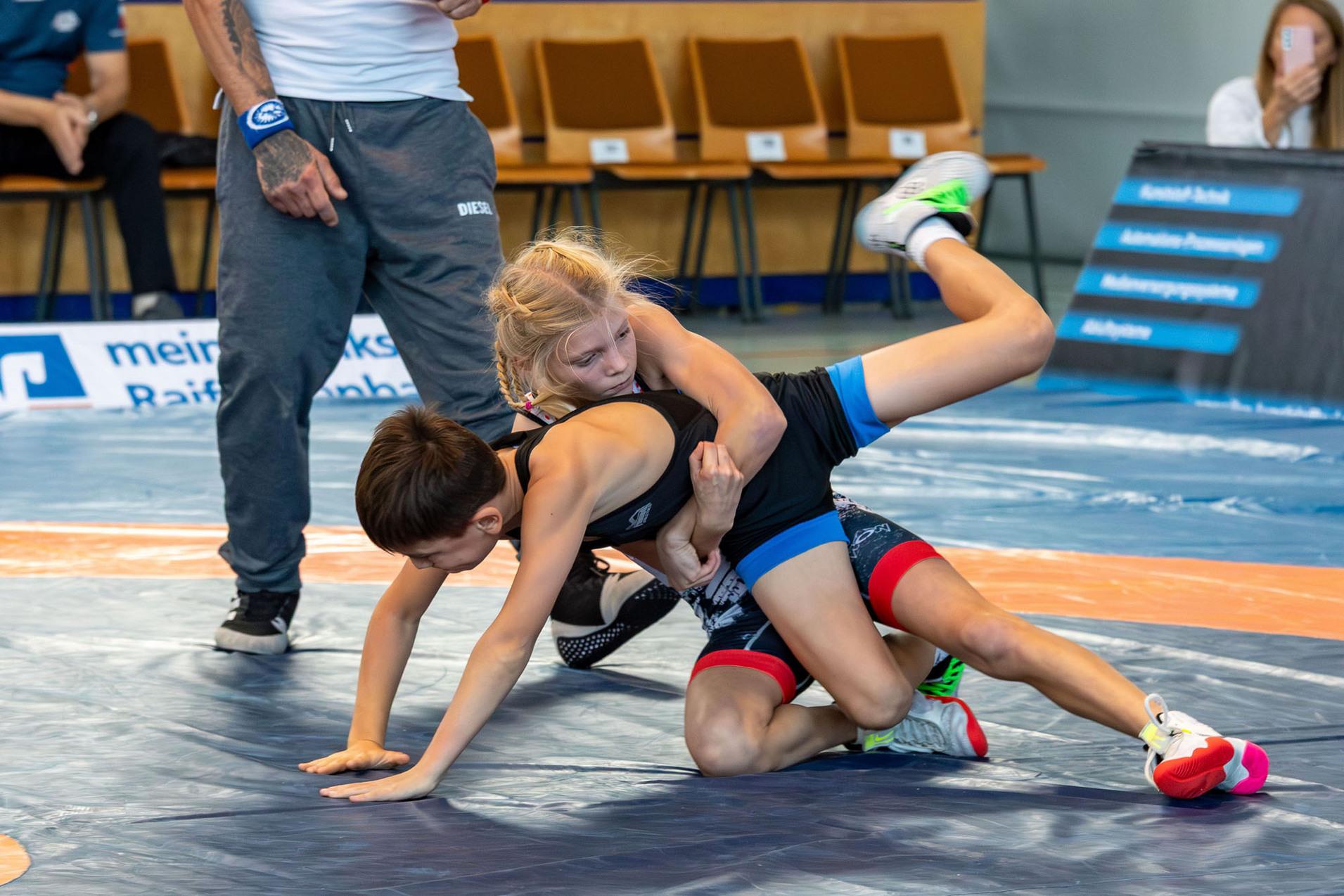 Parallel zu den Bayerischen Schüler-Mannschaftsmeisterschaften fanden in Frankfurt/Oder die Deutschen Meisterschaften der weiblichen Jugend in den Altersklassen U14 und U17 statt. In der Klasse bis 35kg schickte der SV Wacker Burghausen mit Kajsa Lechner die amtierende Bayerische Meisterin ins Rennen. Zum Turnierauftakt traf sie auf Anna May (VfK 07 Schifferstadt) gegen die sie sich nach eineinhalb Minuten Kampfzeit auf Schulter geschlagen geben musste. Im zweiten Kampf traf sie auf Aurelia Dorn (SV Johannis Nürnberg), gegen die sie sich noch bei den Bayerischen Meisterschaften mit 3:0 durchsetzen konnte. Doch dieses Mal hatte die Nürnbergerin das bessere Ende für sich – nach einem ausgeglichenen Kampfverlauf unterlag Kajsa Lechner mit 0:2 nach Punkten und belegte damit im Gesamtklassement den fünften Platz.