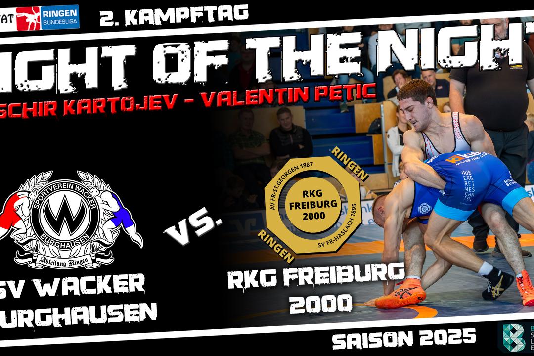 Zum dritten Mal jährt sich heuer die Einführung des „Fight of the Night“ auf dem YouTube-Kanal der Burghauser Ringer. Seither gelten die Highlight-Kämpfe der Bundesliga-Mannschaftskämpfe mit als die beliebtesten Video-Inhalte auf den Kanälen des SV Wacker Burghausen. Auch heuer wird diese Erfolgsgeschichte weitergeschrieben: Zum Einstieg in die neue Saison dürfen wir Ihnen ein ganz besonderes Duell vom Heimkampf gegen die RKG Freiburg 2000 zwischen Baschir Kartojev und dem moldawischen Olympia-Teilnehmer Valentin Petic präsentieren.