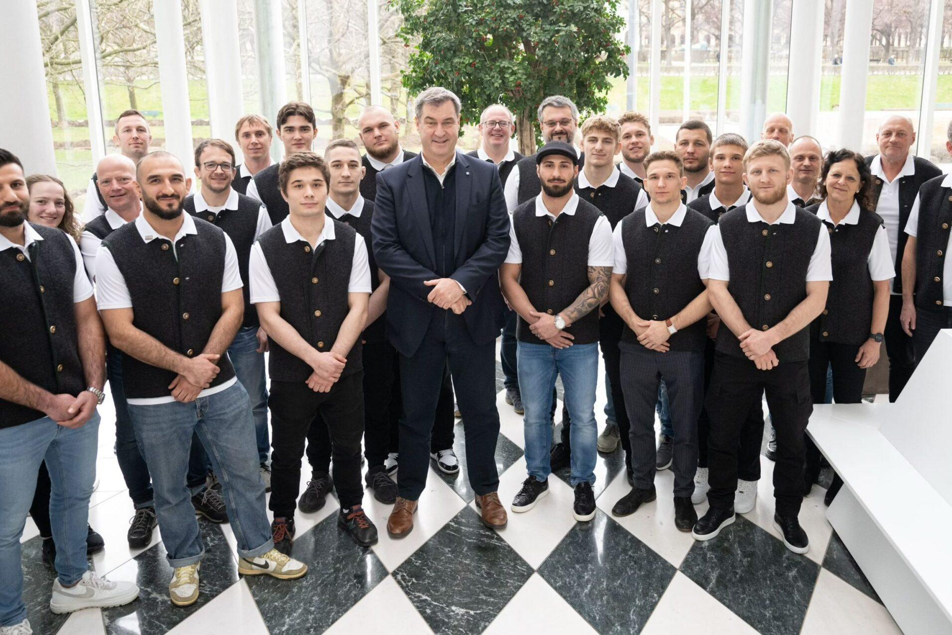 Ende Januar dieses Jahres sicherten sich die Ringer des SV Wacker Burghausen nach einer spannenden Mannschaftsrunde im Finale gegen den SC Siegfried Kleinostheim die Meisterschaft in der DRB Birtat Bundesliga. Nach dem fünften Titelgewinn wurde den Ringern des SV Wacker Burghausen am Dienstag eine der größten Ehren im Freistaat Bayern zuteil: Die gesamte Abteilung Ringen wurde vom Ministerpräsident Dr. Markus Söder in der bayerischen Staatskanzlei empfangen und mit dem Ehrenpreis der bayerischen Staatsregierung für besondere sportliche Leistungen ausgezeichnet.