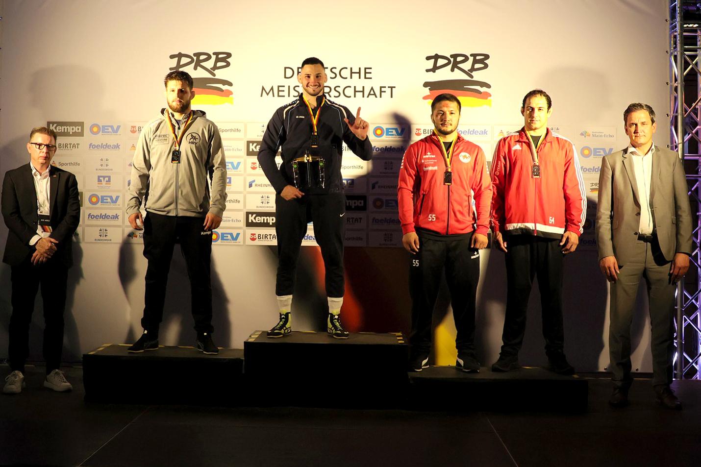 Der 27-jährige Eduard Tatarinov startete seinen Siegeszug mit einem klaren und ungefährdeten 5:0 Punktsieg gegen Andre Winkler (SV Fachsenfeld), dem er durch eine ruhige und überaus konzentrierte Kampfweise den Schneid abkaufte. Wesentlich mehr Gegenwehr erwartete den Traunsteiner im Viertelfinale, in dem er auf Theodoros Singiridis (VfL Bad Kreuznach) traf. Es entwickelte sich ein überaus aktionsreicher Kampf, in dessen Verlauf Tatarinov einerseits offensiv brillierte, anderseits aber in der Defensivarbeit Schwächen und die ein oder andere Unkonzentriertheit zeigte. Am Ende setzte sich Tatarinov aber klar mit 12:6 gegen seinen aus dem Landesverband Rheinland-Pfalz spammenden Gegner durch. Im Halbfinale traf er anschließend auf einen der größten Turnier-Überraschungen - Mojtaba Ziaei (AC Heusweiler), der sich zuvor gegen den hochgehandelten Bundesligaringer Maximilian Kahnt (RSV Greiz) durchsetzen konnte. In einem Duell auf Augenhöhe konnte sich Tatarinov gegen seinen 41-jährigen Gegner knapp mit 3:2 durchsetzen und damit ins Finale einziehen. Dort wartete mit Johannes Deml (KSC Hösbach) ein alter Bekannter, den er in den vergangenen Jahren in der Bundesliga bereits mehrfach gegenüberstand und den er bei seiner letzten Begegnung, dem Playoff-Halbfinale gegen den KSC Hösbach, mit 7:1 besiegen konnte. Durch ein, verglichen mit den vorangegangenen Turnierkämpfen, wesentlich dominanteres Auftreten auf der Matte ging Tatarinov mit 4:0 in Führung. Doch dass Deml in jedem Fall zu den stärksten deutschen Ringern dieser Gewichtsklasse zu zählen ist, stellte dieser eindrucksvoll unter Beweis. Nach einem schnellen Angriff zwang er Tatarinov einmal in die Knie und verkürzte seinen Rückstand auf 4:2. Doch anstatt seinen knappen Vorsprung verwalten zu wollen, schaltete Tatarinov getreu dem Motto „Angriff ist die beste Verteidigung“ nochmals einen Gang höher, sicherte sich nach einem Beinangriff seinerseits zwei Wertungspunkte und trug am Ende damit mit 6:2 den Sieg davon. Ob sich für ihn in absehbarer Zeit wieder die Möglichkeit ergibt, international auf die Matte gehen zu können, wird die Zeit zeigen. Mit seinen starken Leistungen in den vergangenen Jahren dürfte er sich auf jeden Fall wieder zurück ins Blickfeld der Bundestrainer befördert haben.