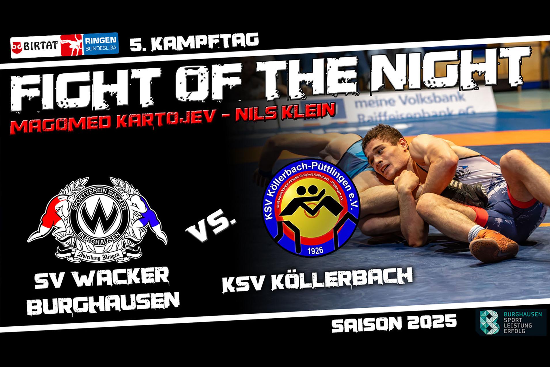 Der „Fight of the Night“ auf dem YouTube-Kanal der Burghauser Ringer gilt seit seiner Einführung als feste Konstante im Bereich des digitalen Angebots der Wacker-Ringer. Seither gelten die Highlight-Kämpfe der Bundesliga-Mannschaftskämpfe mit als die beliebtesten Video-Inhalte auf den Kanälen des SV Wacker Burghausen. Auch heuer wird diese Erfolgsgeschichte weitergeschrieben: Als Highlight des fünften Kampftags dürfen wir Ihnen ein ganz aktionsreiches und kurzweiliges Duell vom Heimkampf gegen den KSV Köllerbach zwischen Magomed Kartojev und Nils Klein präsentieren.