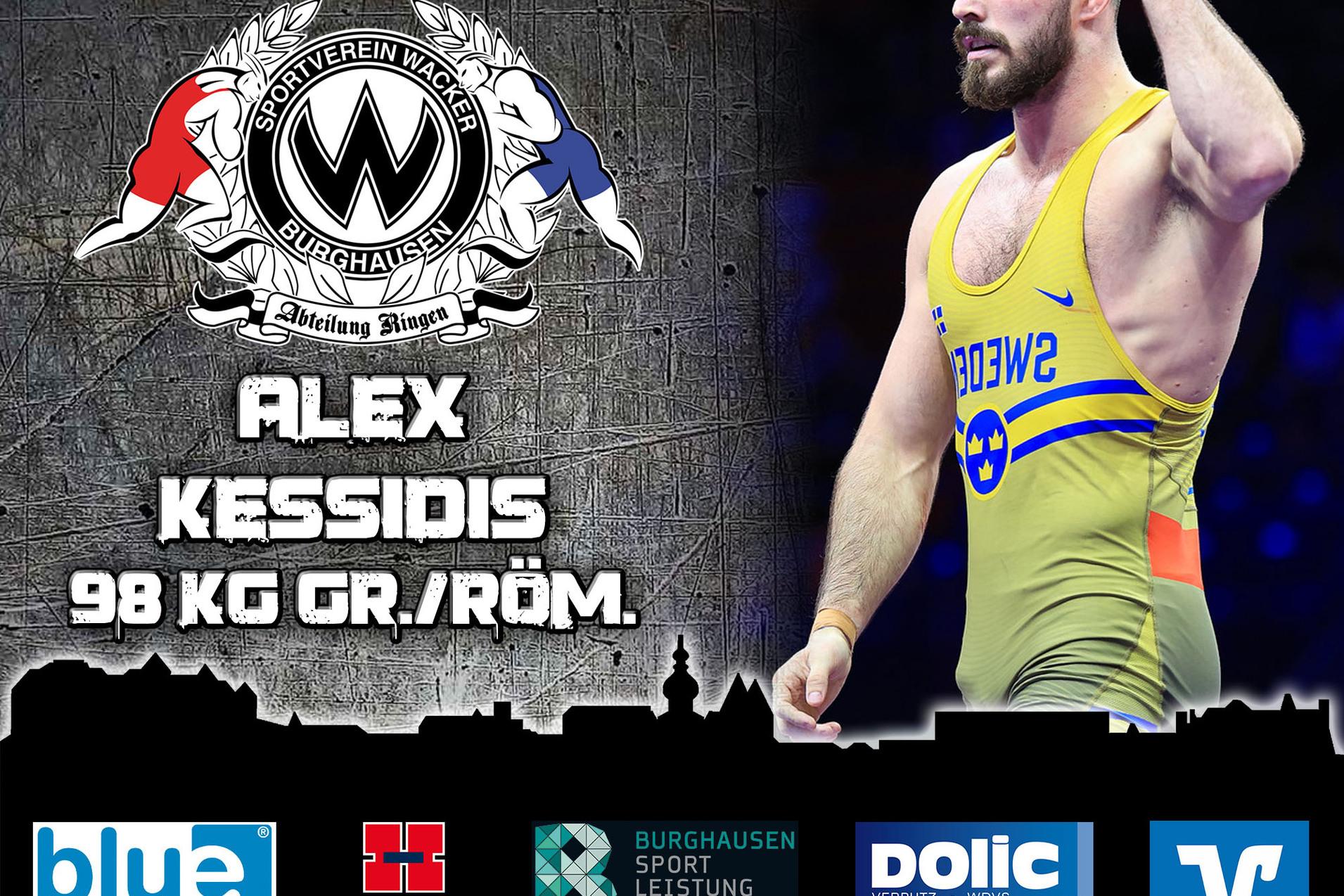 Alex Kessidis wurde als Sohn eines griechischen Vaters und einer schwedischen Mutter geboren und wuchs zusammen mit seinem Bruder Laokratis in Schweden auf. Beide Brüder fanden schon in frühen Jahren ihre Passion für den Ringkampfsport und entwickelten sich zu reinen Spezialisten für den griechisch-römischen Stil. Während sich Alex Kessidis dafür entscheid, die Farben Schwedens zu vertreten, schloss sich sein Bruder Griechenland an. Der 30-jährige Alex Kessidis kann in seiner langen internationalen Karriere bereits auf eine Vielzahl an Erfolgen zurückblicken: Im Jahr 2017 errang er bei den U23-Europameisterschaften die Goldmedaille, bei den Europaspielen in Minsk 2019 sowie bei den Europameisterschaften 2020 sicherte er sich Bronze. Als bisher größter Erfolg gilt jedoch seine Silbermedaille bei den Weltmeisterschaften 2019. In Burghausen wird er in den oberen Gewichtsklassen zum Einsatz kommen.