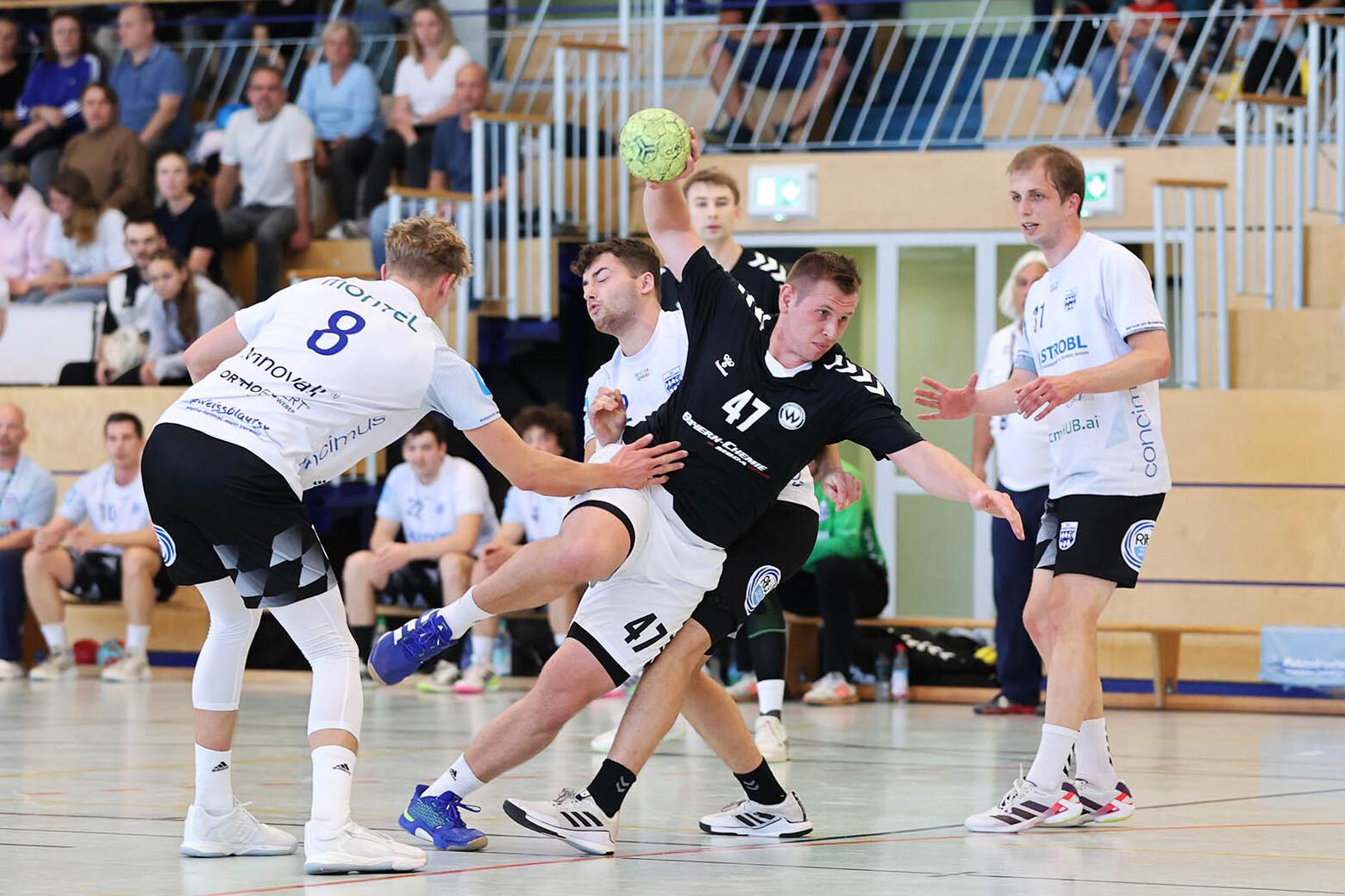 7-Treffer von Kreisläufer Christian Schreyer, hier im Heimspiel gegen den TSV Herrsching, reichten nicht, um beim SC Unterpfaffenhofen-Germering die ersten Punkte mitzunehmen. Foto: Zucker