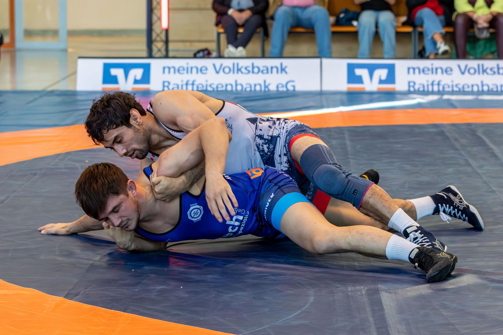 Im Auftaktkampf bis Gewichtsklasse bis 61 kg Freistil kam es gleich zum internationalen Top-Duell zwischen Wackers Olympiadritten Gulomjon Abdullaev und Hösbachs amtierenden Vize-Europameister Azamat Tuskaev. Abdullaev punktete früh mittels Beinangriff und kontrollierte den Kampf über die gesamte Distanz, als plötzlich 30 Sekunden vor Schluss Kampfleiter Jörg Jähnichen zur Überraschung aller eine Verwarnung gegen den Wackerianer aussprach und dem Hösbacher förmlich die Führung schenkte. Doch Abdullaev mobilisierte nochmal all seine Kräfte, punktete fünf Sekunden vor Schluss mit einem Bilderbuch Schulterschwung und zog damit den Kampf mit 6:5 noch auf seine Seite. Im Schwergewichtskampf kam es zum Aufeinandertreffen zwischen Wackers Neuzugang Alex Kessidis und Anton Vieweg. Kessidis war der dominante Mann, führte zur Hälfte mit 3:0 Punkten, als auch hier plötzlich Mattenleiter Jörg Jähnichen plötzlich seinen "Auftritt" hatte: Wie schon im ersten Kampf sanktionierte er den Wackerianer aus dem Nichts - sogar sein Gegner war verblüfft, dass er ohne eigenes Zutun auf einmal in Führung lag. Doch Kessidis blieb ruhig und spielte seine ganze internationale Klasse aus. Mit starken Aktionen sicherte er sich noch drei Wertungspunkte und brachte mit seinem 6:3 Punktsieg Burghausen mit 3:0 in Führung. Im Limit bis 66kg Greco kam es zum Duell der beiden noch unbesiegten Christopher Kraemer und Abdolmohammad Papi. Kraemer musste sich auf den deutschen Einzelmeisterschaften dem Hösbacher noch geschlagen geben und war dementsprechend von Anfang an auf Revanche aus. Die erste Bodenlage nutzte der Wackerianer gleich zu einem Ausheber und baute seine Führung bis zur Halbzeit auf 4:0 aus. Als der Hösbacher in der zweiten Runde nochmal aufkam, verwaltete Kraemer seinen Vorsprung geschickt und wurde am Ende 4:3 Punktsieger.