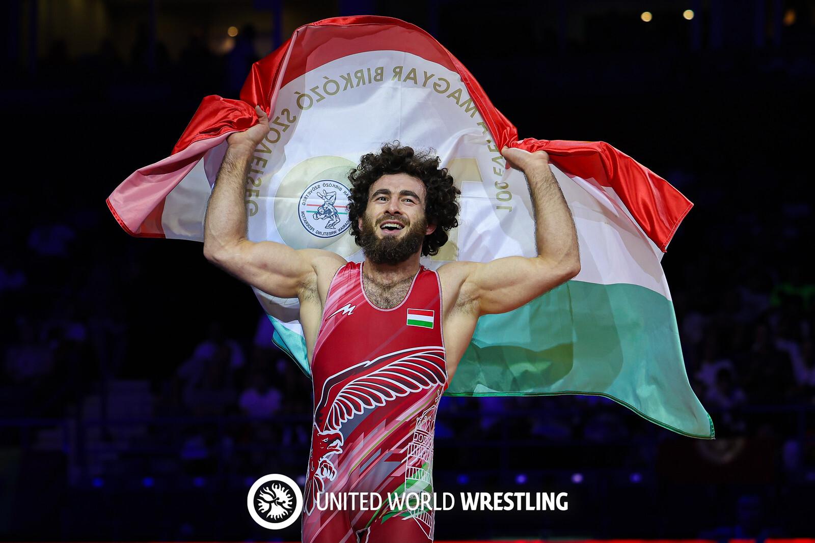 Kaum in Worte zu fassen war der Auftritt von Iszmail Muszukajev (Ungarn), der sich in seiner angestammten 65kg zum ersten Mal zum Weltmeister kürte. Diese Leistung kann nicht hoch genug eingeschätzt werden, war doch die Konkurrenz in der 65kg-Klasse mit die stärkste im gesamten Turnier. Im Sechzehntelfinale traf Muszukajev auf den Kasachen Adil Ospanov, den er ungefährdet mit 7:0 nach Punkten bezwingen konnte. Doch bereits im Achtelfinale wartete mit dem japanischen Olympiasieger und mehrfachem Weltmeister Takuto Otoguro einer der absoluten Top-Favoriten auf den diesjährigen Weltmeistertitel: doch davon ließ sich Muszukajev verunsichern und legte den anschließend vollkommen konsternierten Favoriten im zweiten Kampfabschnitt nach einem herrlichen Angriff zur Hüfte beim Stand von 6:1 auf beide Schultern. Im Viertelfinale wartete mit dem Russen Shamil Mamedov ein weiterer schwerer Gegner, der sich zuletzt im Jahr 2021 und Junioren-Weltmeister küren konnte. In einem ausgeglichenen und taktisch geführten Mattengefecht setzte sich Muszukajev am Ende ebenfalls mit 5:4 nach Punkten ein und rückte damit ins Halbfinale vor, wo mit dem Iraner Rahman Mousa Amouzadkhalili – seines Zeichens vierfacher Welt- und Asienmeister - der wohl aktuell stärkste Ringer in der 65kg-Klasse wartete. Nach einer ausgeglichenen ersten Runde ging es beim Stand von 2:2 in die entscheidende Phase, in der sich ein Duell beider Weltklasseringer mit offenem Visier entwickelte. Zehn Sekunden vor Kampfende sah der Iraner wie der sichere Sieger aus, führte er doch mit 5:4. Doch Iszmail Muszukajev gelang mit dem letzten Beinangriff der entscheidende Take-Down, der nicht nur zwei Wertungspunkte, den 6:5 Punktsieg, sondern auch den vielumjubelten Finaleinzug brachte. Im Finale traf Iszmail Muszukajev auf den Puerto Ricaner Sebastian Rivera – einen Ringer, den dort selbst die größten Experten nicht erwarteten. Rivera konnte in seiner noch jungen Karriere bisher nur auf einen fünften Platz bei den Weltmeisterschaften 2022 zurückblicken. Und mit dem großen Ziel vor Augen, ließ Muszukajev von der ersten Minute an keinen Zweifel, wer am Ende die Matte als Sieger verlassen würde. Dank Muszukajevs gefürchteten Beinangriffen ging der Ungar schnell mit 3:0 in Führung und baute diese dank eines blitzschnellen Angriffs verbunden mit einem kraftvollen Ausheber sogar noch auf 7:0 vor der Pause aus. Kurz nach Wiederbeginn war das ungleiche Duell dann vorzeitig beendet - ein weiterer Vier-Punkte Wurf Muszukajevs brachte dem 30-jährigen Ungarn seinen ersten WM-Titel in seiner langen Karriere ein.