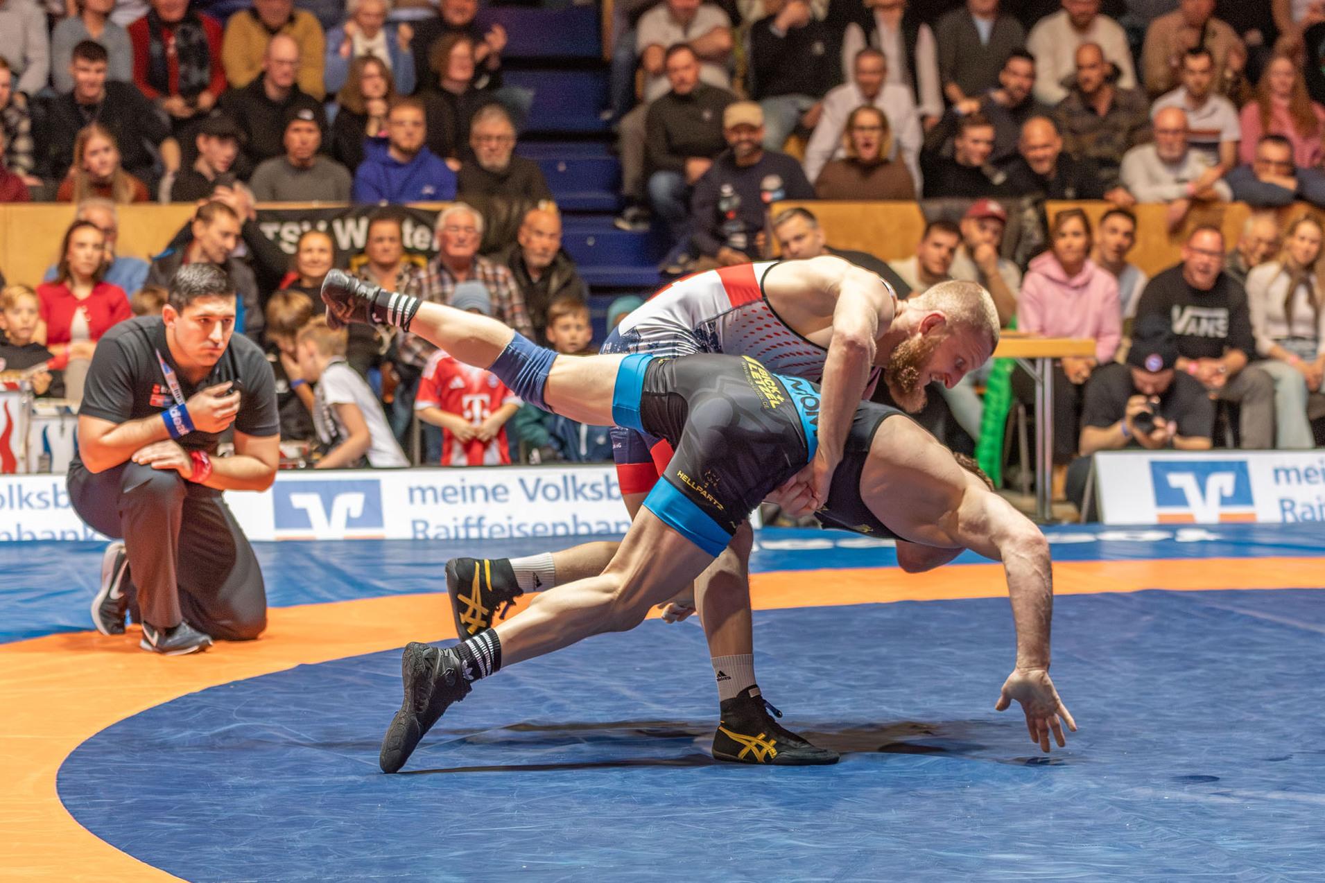 Beim Zwischenstand von 8:3 eröffnete Eduard Tatarinov im 86kg-Freistillimit die zweite Hälfte gegen den deutschen Meister Joshua Morodion. Der Wackerianer hatte die klare Vorgabe, den Kampf ohne großes Risiko so eng wie möglich zu gestalten, setzte diese diszipliniert um, und gestattete dem Gast bei seiner knappen Punktniederlage nur zwei Mannschaftspunkte. In der 75kg-Klasse erlebten die Zuschauer im Duell zwischen Iszmail Muszukajev und Rasul Shapiev einen hochklassigen Freistilkampf mit zahlreichen intensiven Auskämpfsituationen.