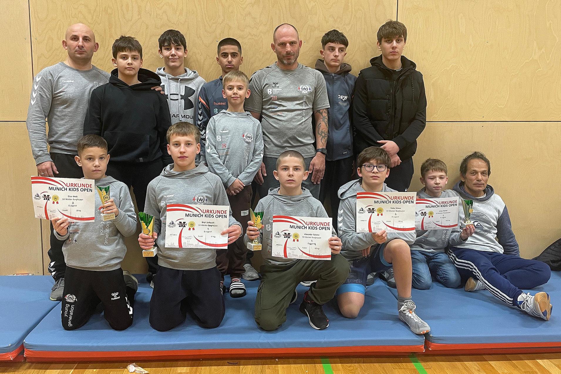 Mit der beeindruckenden Anzahl von dreizehn Startern machten sich die Burghauser Nachwuchsringer zusammen mit Ihren Betreuern und Trainern Halit Yilmaz, Jawad Mohammad und Mario Scholz auf den Weg zu den vom ESV München Ost veranstalteten Munich Kids Open. Wie schon in den vergangenen Jahren gingen in München rund 350 aktive Sportler im freien Stil auf die Matte, sodass dieses Nachwuchsturnier seit vielen Jahren eine feste Konstante im Turnierkalender des Bayerischen Ringerverbands darstellt. Am Ende sollte sich die harte Arbeit für den Wacker-Tross am Ende durchaus gelohnt haben: Nach einem langen Turniertag und einer Vielzahl an schweißtreibenden Mattengefechten kehrten die Burghauser Nachwuchsathleten mit zwei Turniersiegern zurück nach Hause.