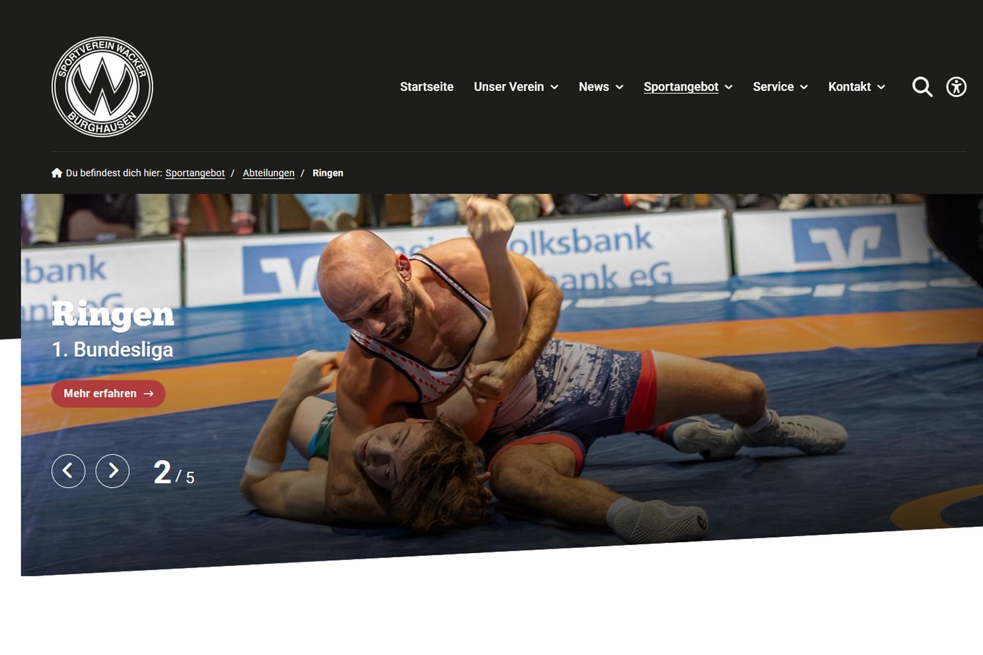 …weiter geht es mit unserem Rundgang durch die neue Online-Präsenz der Ringer des SV Wacker Burghausen. Nachdem wir zuletzt den News-Bereich und die Übersichten unserer Kader „bereist“ haben, geht es nun in einen der Kernbereiche unserer Homepage - die Seiten unserer Bundesliga-, Oberliga- und Nachwuchsmannschaft sowie die Übersicht der Trainingszeiten. Darüber hinaus werfen wir einen tiefen Blick in den Menüpunkt „Abteilung“, in dem man alles rund um die Abteilung Ringen des SV Wacker Burghausen erfahren kann.