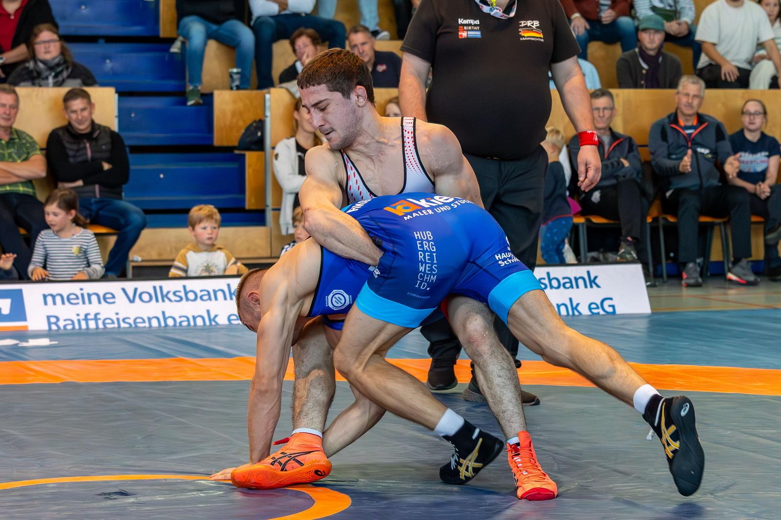Im Auftaktkampf bis 61kg Freistil ließ Wackers amtierender Dritter Weltmeister Gulomjon Abdullaev gegen Mihail Lapp nichts anbrennen. Der Burghauser Ausnahmeringer wurde seiner Favoritenrolle vollauf gerecht, dominierte von Beginn an mit seinen vielseitigen Beinangriffen und siegte bereits nach 2:52 Minuten technisch überlegen. Damit brachte er Burghausen mit 4:0 in Führung. Im Schwergewicht bis 130kg Greco entwickelte sich ein packendes Duell zwischen Wacker-Eigengewächs Alexander Kreimer und Nikita Ovsjanikov. Der junge Burghauser zeigte großen Kampfgeist: Trotz eines 0:2-Rückstands ließ er sich nicht entmutigen, blieb geduldig und konnte den Kampf schließlich durch einen kraftvollen Durchdreher noch zu seinen Gunsten entscheiden. Nach sechs intensiven Minuten endete das Duell 2:2, doch dank der letzten Wertung ging der Sieg verdient an Kreimer. Der Wackerianer, der im vergangenen Jahr erstmals Bundesliga-Luft schnuppern durfte, konnte somit nun seinen ersten Sieg im Oberhaus feiern. Nach seinem souveränen Auftakt-Sieg gegen Mainz knüpfte Christopher Kraemer im Limit bis 66kg Greco Limit nahtlos an seine Leistung an und zeigte gegen den früheren dritten Europameister Cornelio Rusu von Beginn an, wer die Matte an diesem Tag als Sieger verlassen würde. Er punktete sowohl im Standkampf als auch im Boden mit seinem Ausheber und ließ seinem Gegner keine Chance. Mit enormer Durchschlagskraft und technischer Dominanz beendete Kraemer den Kampf nach 3:35 Minuten beim Stand von 17:0 vorzeitig und brachte somit Wacker mit 9:0 in Führung. In der Gewichtsklasse bis 98kg kam es im Duell zweier deutscher Meister zu dem erwartet knappen Kampf zwischen Erik Thiele und Lars Schäfle. Beide neutralisierten sich lange Zeit, bevor Thiele im entscheidenden Moment seine Routine ausspielte und den Kampf mit 2:1 nach Punkten für sich entschied. Im letzten Kampf vor der Pause traf Magomed Kartojev auf den Freiburger Dario Fischetti, den amtierenden dritten Jugendeuropameister. Es entwickelte sich ein dynamisches Duell, ehe der Freiburger zu einem riskanten Wurf ansetzte und alles auf eine Karte setzte. Doch Kartojev reagierte blitzschnell, konterte die Aktion eiskalt und drückte seinen Gegner auf beide Schultern. Nach nur 1:43 Minuten war der Kampf damit entschieden und Burghausen ging mit einem komfortablen 14:0 in die Pause.