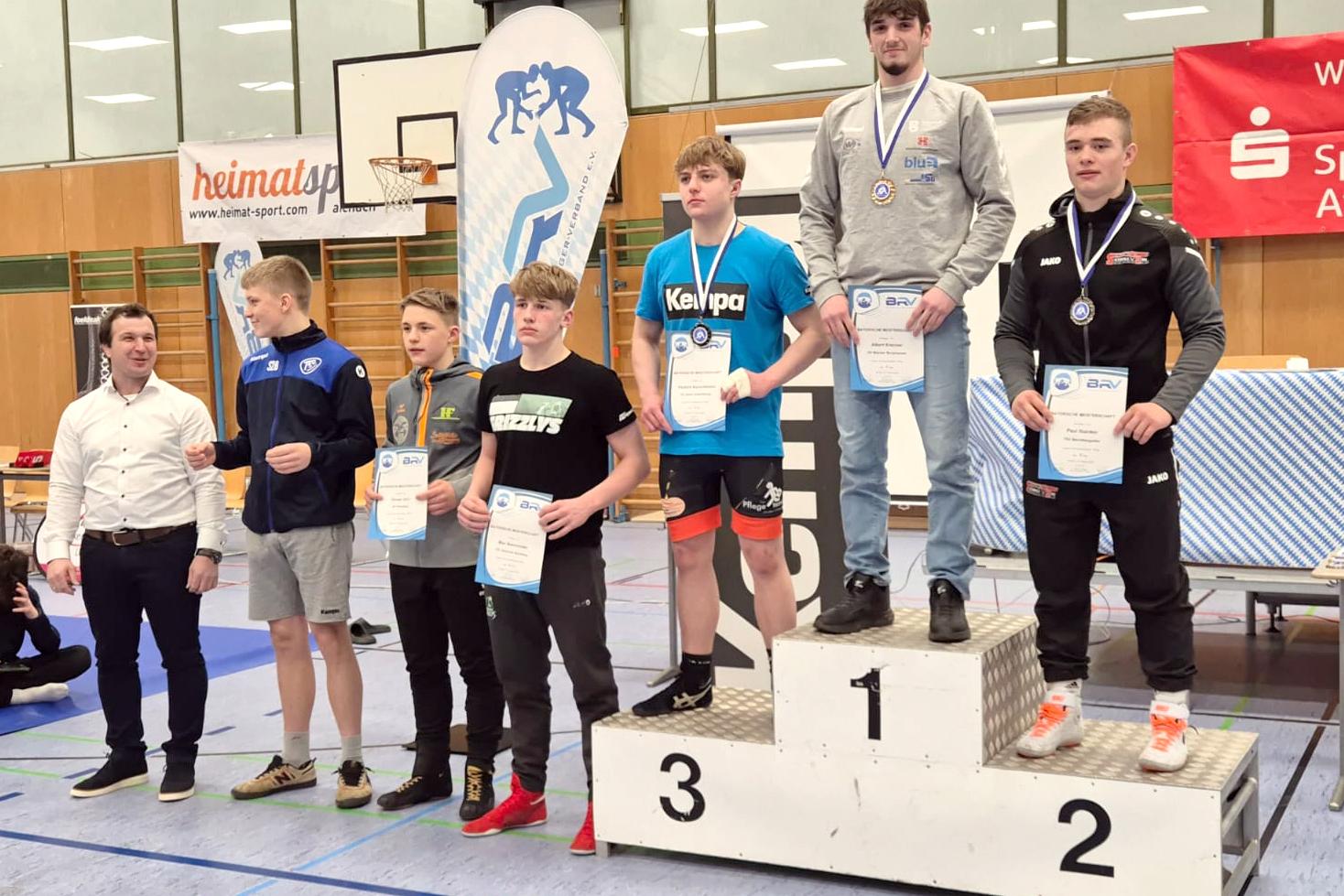 In der Altersklasse der U17 ragte allen voran Albert Kreimer hervor, der in der 80kg-Klasse eine absolut makellose Bayerische Meisterschaften rang und sich am Ende verlustpunktfrei den diesjährigen Titelgewinn sichern konnte. Bei seinen sechs Auftritten ging Kreimer stets als vorzeitiger Sieger hervor – durch seine fünf Überlegenheitssiege und einen Schultersieg wurde Kreimer zudem als technisch bester Ringer des Turniers ausgezeichnet. Weniger erfolgreich verliefen hingegen die Wettkämpfe für die Burghauser Medaillenhoffnung Sultan Muhametow, der in der 71kg-Klasse hinter den Erwartungen zurückblieb und nach einem Sieg und zwei unglücklichen Niederlagen nur den achten Rang belegte.