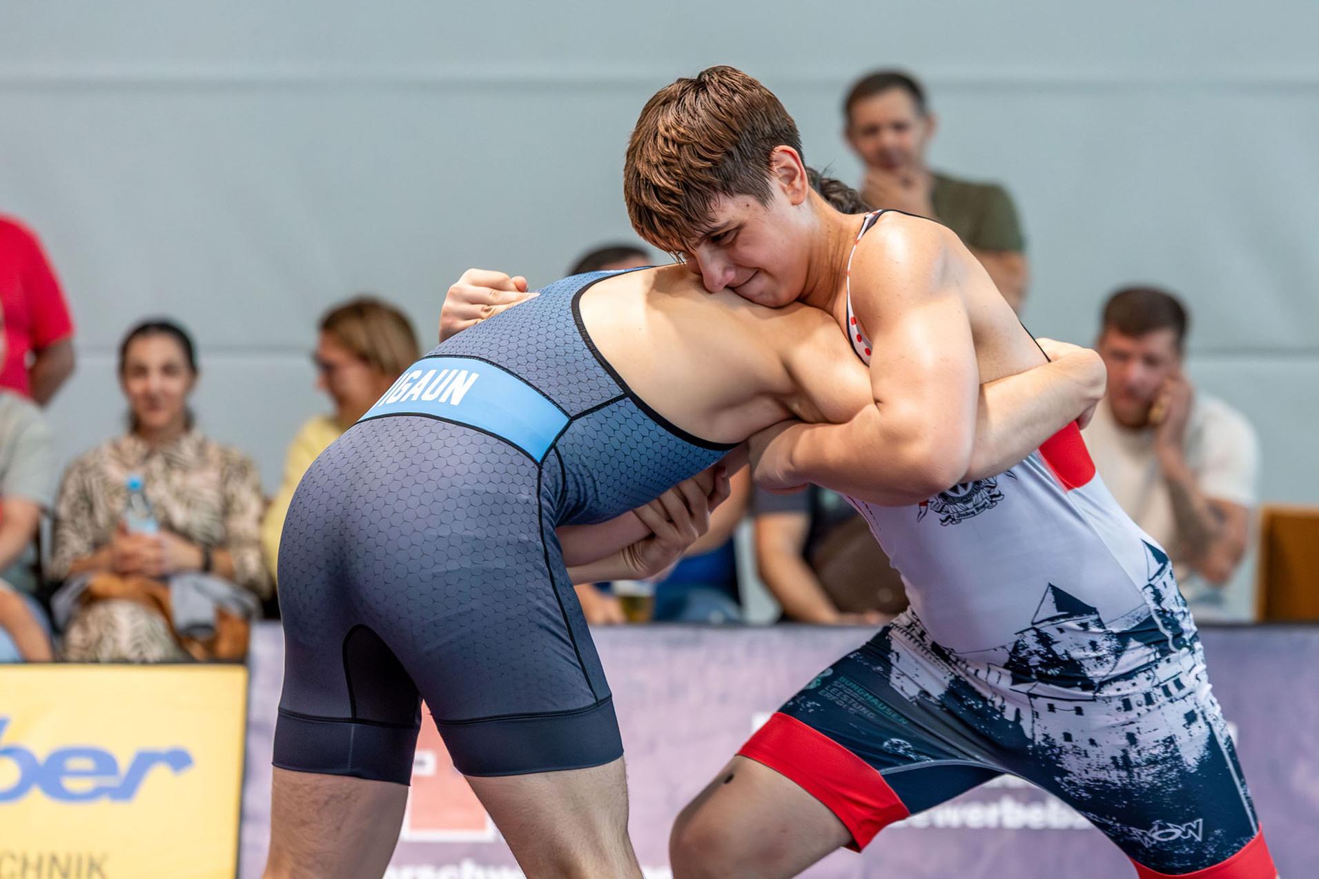 Schon am Freitag zog es den Burghauser Tross zum österreichischen Vertreter des AC Wals, einem der Mitfavoriten auf den diesjährigen Titelgewinn. Und der Kampfnachmittag begann wahrlich nicht vielversprechend: von den ersten fünf Begegnungen gingen ausnahmslos alle die Gastgeber. Dass einige Kämpfe nur knapp zu Gunsten der Österreicher endeten, sollte sich am Ende noch bezahlt machen. So zeigte Marian Ghiorghias gegen Raphael Ragginger eine tadellose kämpferische Leistung und unterlag nur knapp mit 3:1 nach Punkten. Chancenlos waren hingegen Kajsa Lechner sowie Vladyslov Hordiienko, die ihren Gegnern vorzeitig unterlagen. Als dann auch noch Artur Michel im Kampf mit Luca Bozic eine knappe 4:2 Niederlage einstecken musste, war der Burghauser Fehlstart komplett. Dass die Gastgeber bei einer 14:0 Halbzeitführung an diesem Nachmittag keinen weiteren Kampf mehr gewinnen sollten, ahnte zu diesem Zeitpunkt niemand. Die Aufholjagd startet Timur Muhametow, der kampflos die Punkte einstreichen konnte. Und auch Gabriel Lechner machte mit seinem Gegner Markus Berger kurzen Prozess: nach rund einer halben Minute Kampfdauer legte er ihn elegant aufs Blatt. Noel Scholz nahm die in der Burghauser Mannschaft aufkeimende Hoffnung erfolgreich auf und legte Julian Cikel nach anfänglichem Abtasten mit der ersten erfolgreichen Aktion auf beide Schultern. Damit schaffte die Burghauser Mannschaft den Anschluss und machte aus einem 14:0 binnen dreier Kämpfe eine 14:12. Und mit Mustafa Ermanbetov sowie Kiryl Sulkouski hatte der SVW noch zwei heiße Eisen im Rennen: der in der laufenden Saison noch ungeschlagene Sulkouski zeigte seinem Gegner Avas Kaysim schnell, wo der Hammer hängt: nach eineinhalb Minuten hatte Sulkouski seinen überforderten Gegner mit 16:0 ausgepunktet, sodass die Burghauser Mannschaft zum ersten Mal an diesem Kampftag die Führung übernahm. Und auch auf Mustafa Ermanbetov war wie gewohnt Verlass: wenngleich sein Gegner Jakob Wieland alles in die Waagschale warf, was er aufzubieten hatte, war es am Ende der Burghauser, der sich über seinen 12:4-Sieg freuen und so auch den Schlusspunkt zum 19:14 Mannschaftserfolg seines Teams setzen konnte.