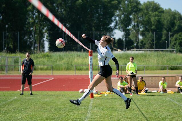 - Der Ball darf nach jeder Berührung einmal den Boden berühren – das unterscheidet Faustball von Volleyball.