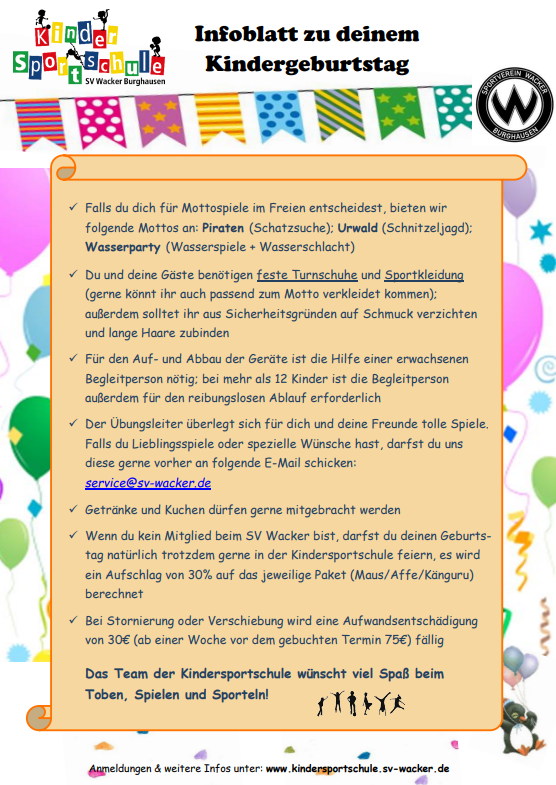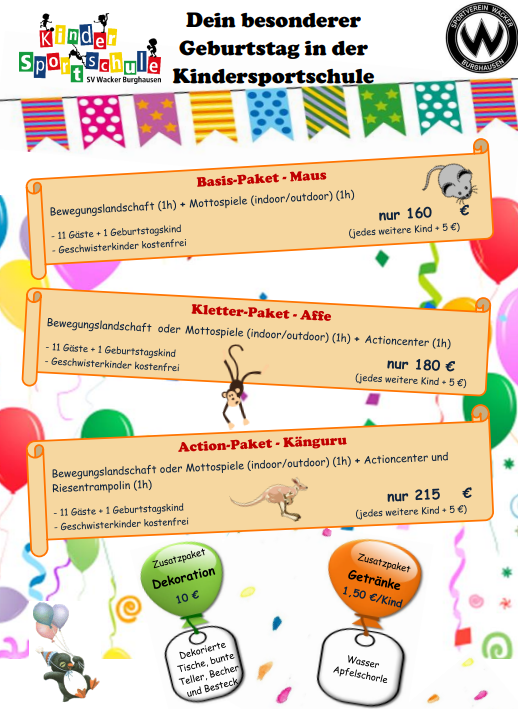Unsere Kindersportschule bietet dir ein unvergessliches Geburtstagserlebnis voller Bewegung, Spiel und Abenteuer. Ob spannende Mottospiele im Freien, kreative Herausforderungen oder sportliche Teamaufgaben – bei uns steht der Spaß immer an erster Stelle.